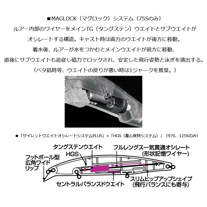 重心保持システム(HGS)をあえてルーズに設定することで、ワイドアクションや流れの変化でウエイトの「保持⇔フリー」を繰り返し、自動的にバランスを崩す「喰わせの間」をルアーが勝手に演出してくれる。