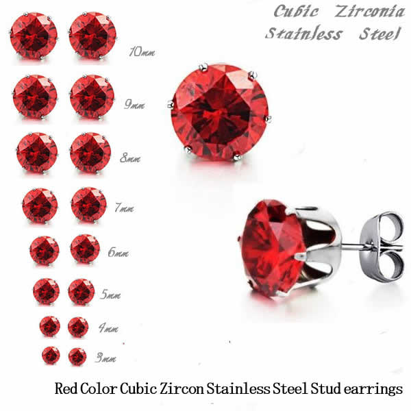 キュービックジルコニアピアス(CZレッド) 8mm クリスタル 1個販売 ステンレスピアス サージカルステンレス316L メンズ レディース 20G 20ゲージ アレルギー たて爪 立爪 ジルコニア 軟骨 耳 結婚式 パーティ スーツ 大人 キャッチピアス スタッドピアス 赤色 大きめ