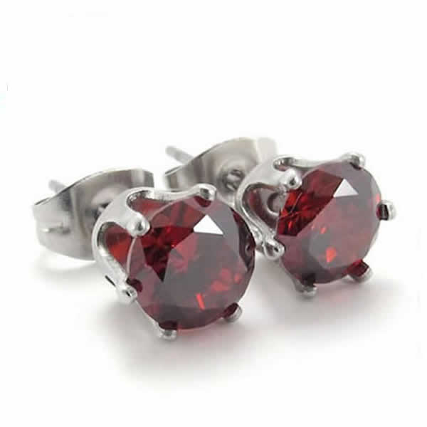 赤色のキュービックジルコニアをセットした6本のたて爪ロイヤルジュエルピアス。